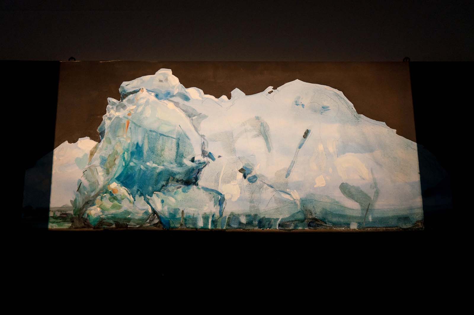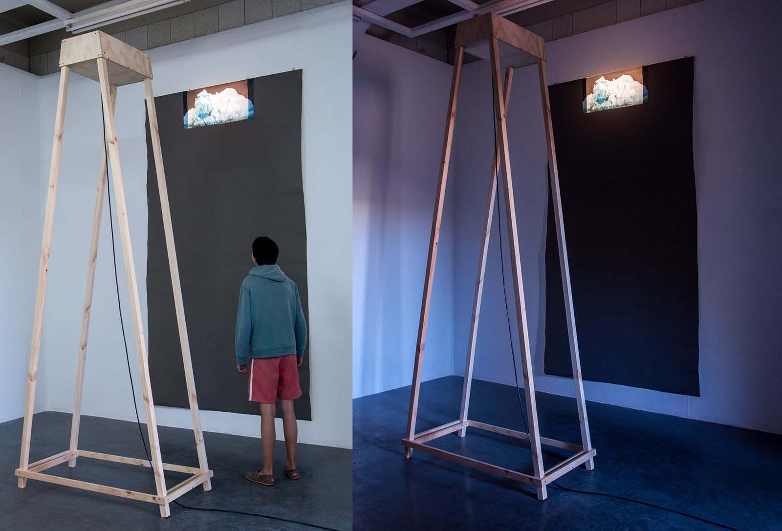 Instalación. Estructura de madera, óleo y látex sobre tela, proyección de luz.